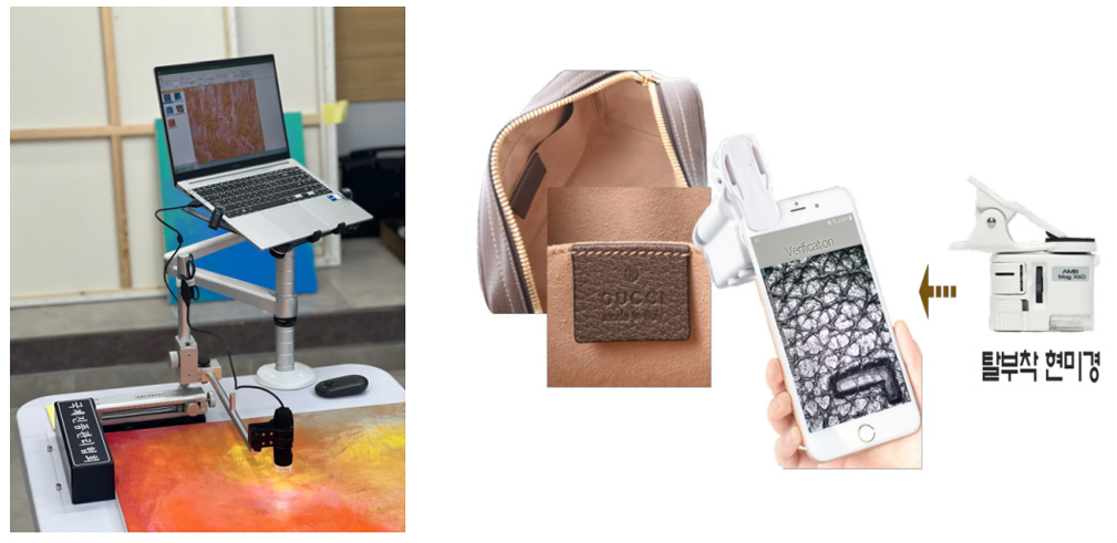 1) PC¿ë(ÁÂ) : ½Ã½ºÅÛ ¹× Àåºñ ÀÛµ¿ ±³À°À» ¹ÞÀº Àü¹®°¡µéÀÌ »ç¿ëÇÒ ¼ö ÀÖ´Â °ü¸®ÀÚ¿ëÀ¸·Î °³¹ßµÇ¾ú°í, ÁÖ·Î ¹Ì¼úǰÀ» ÀÎÁõ¡¤°ËÁõÇÏ´Â µ¥¿¡ »ç¿ëÇÕ´Ï´Ù. ½Ç¹°ÀÇ Ç¥¸éÀ» 1¹è ÀÌ»ó È®´ëÇϴ ƯÇ㸦 ±â¹ÝÀ¸·Î, ÀÛǰÀ» 1¹è¿¡¼ ¼ö½Ê¹è È®´ëÇÑ Ç¥¸é¿¡¼ Ç¥¸éÁö¹®À» äÃëÇÕ´Ï´Ù. ¼öÄ¡ÈµÈ Ç¥¸éÁö¹®À» »ý¼ºÇÏ¿© º¸°üÇÑ ÈÄ ÀÛǰ¿øº»µî·ÏÁõ ¹× µµ·Ï µî¿¡ ¼ö·ÏÇÏ¿© Á¦°øÇÕ´Ï´Ù. ¹Ì¼úǰÀÇ Æ¯¼ºÀ» ÀÌÇØÇϰí ÈѼյÇÁö ¾Êµµ·Ï ÀÛǰ°ú Àåºñ¸¦ ¾ÈÀüÇÏ°Ô ´Ù·ê ÁÙ ¾Æ´Â Àü¹®°¡°¡ Àåºñ¸¦ ÀÛµ¿ÇÏ¿© ÁøÀ§ È®ÀÎÀ» µ½´Â °ÍÀÌ ÁÁ½À´Ï´Ù.